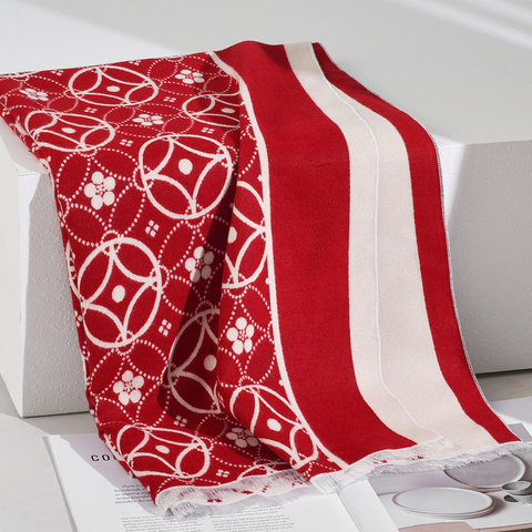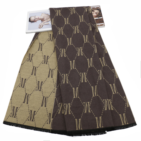 Yumuşak Unisex logo desen dokuma yün eşarp, lüks ve şık pamuk özel tasarımcı eşarp